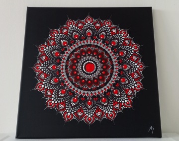 Ručně malovaná mandala na plátně technikou dot art. Každý obraz je originál, nebudou 2 stejné.